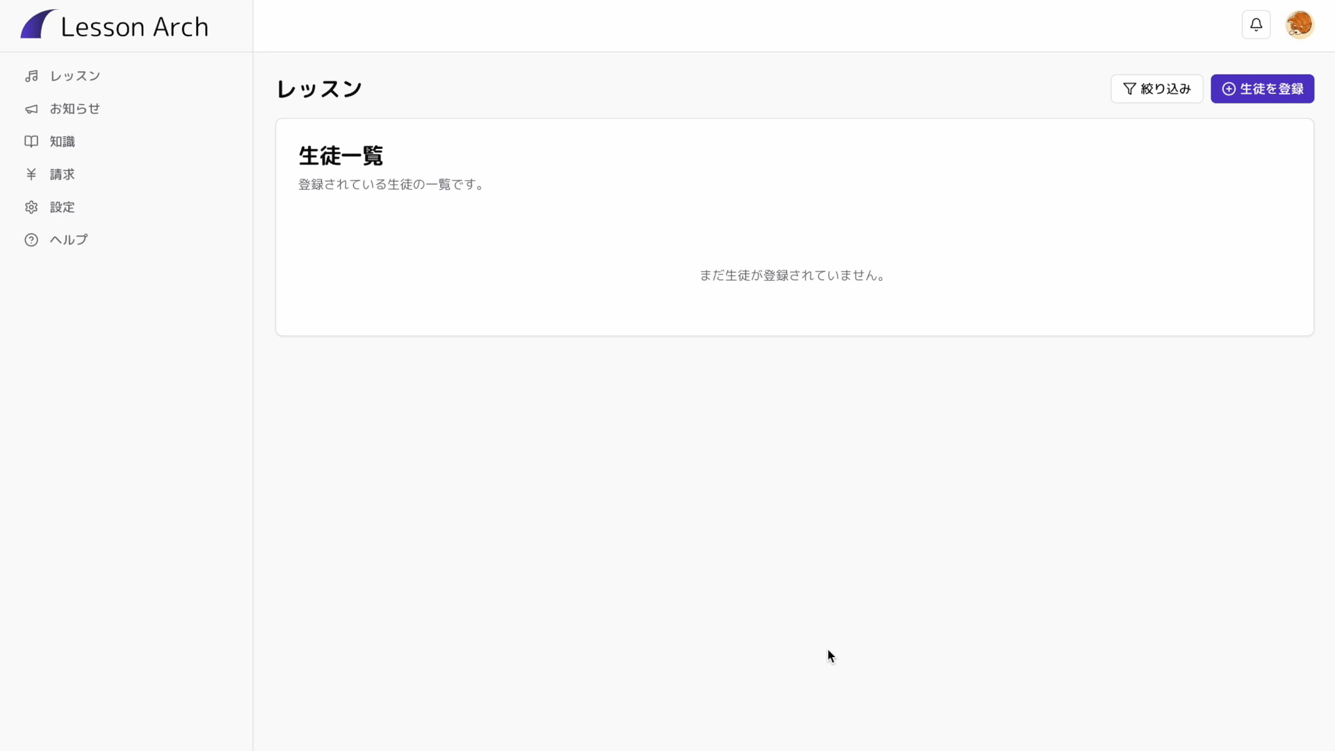 続いて、「レッスン」メニューの「生徒を登録」から生徒の情報を登録しましょう。